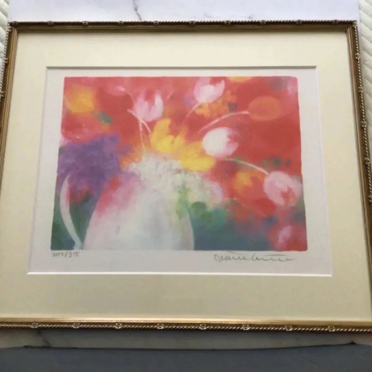 - 美術品・アンティーク・コレクション > 版画 > ジニー・キム 版画 限定ジクレー 新品額入り 直筆サイン、ED有り 証明書付 ジニー・キム 『窓の春』限定エディション付リトグラフ 額入り
