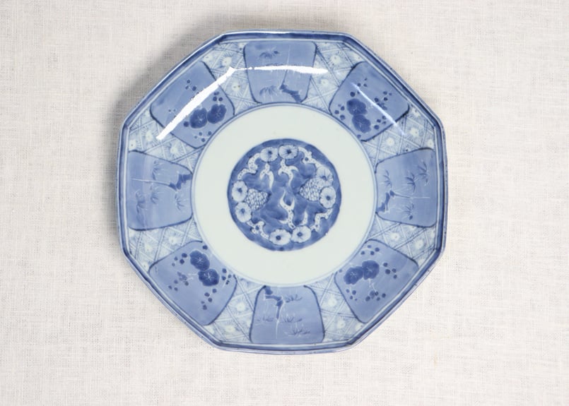 | メーカー | 江戸後期 染付松竹梅大皿 後期鍋島 三方兜唐花文 高台櫛目文 桐箱付 34cm 江戸後期 |